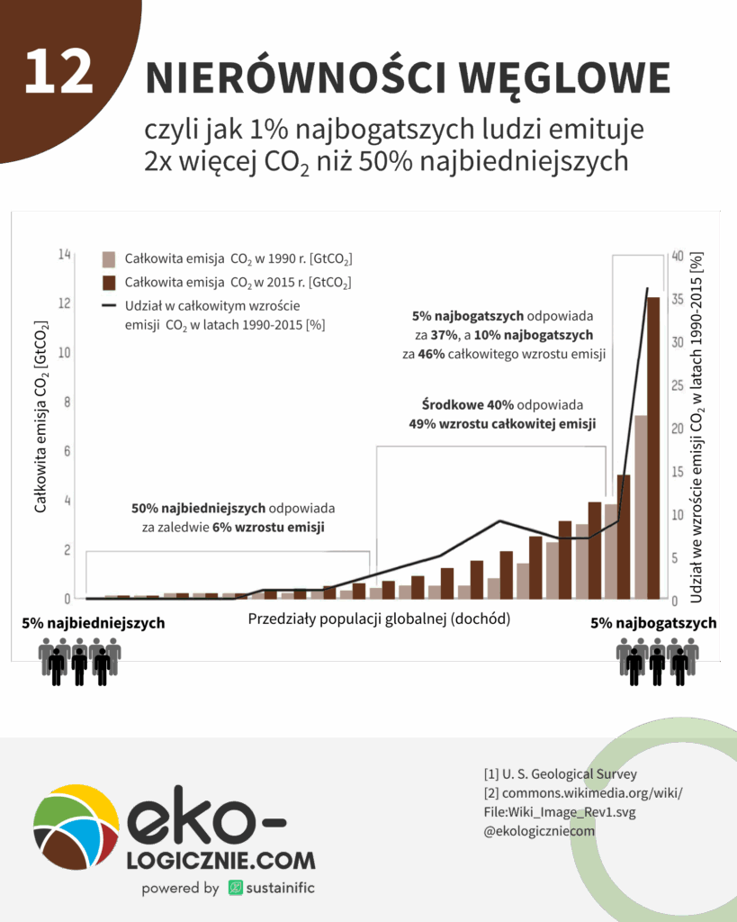 – wzrost emisji u 1% najbogatszych ludzi był 3-krotnie większy od wzrostu emisji 50% najbiedniejszych ludzi.