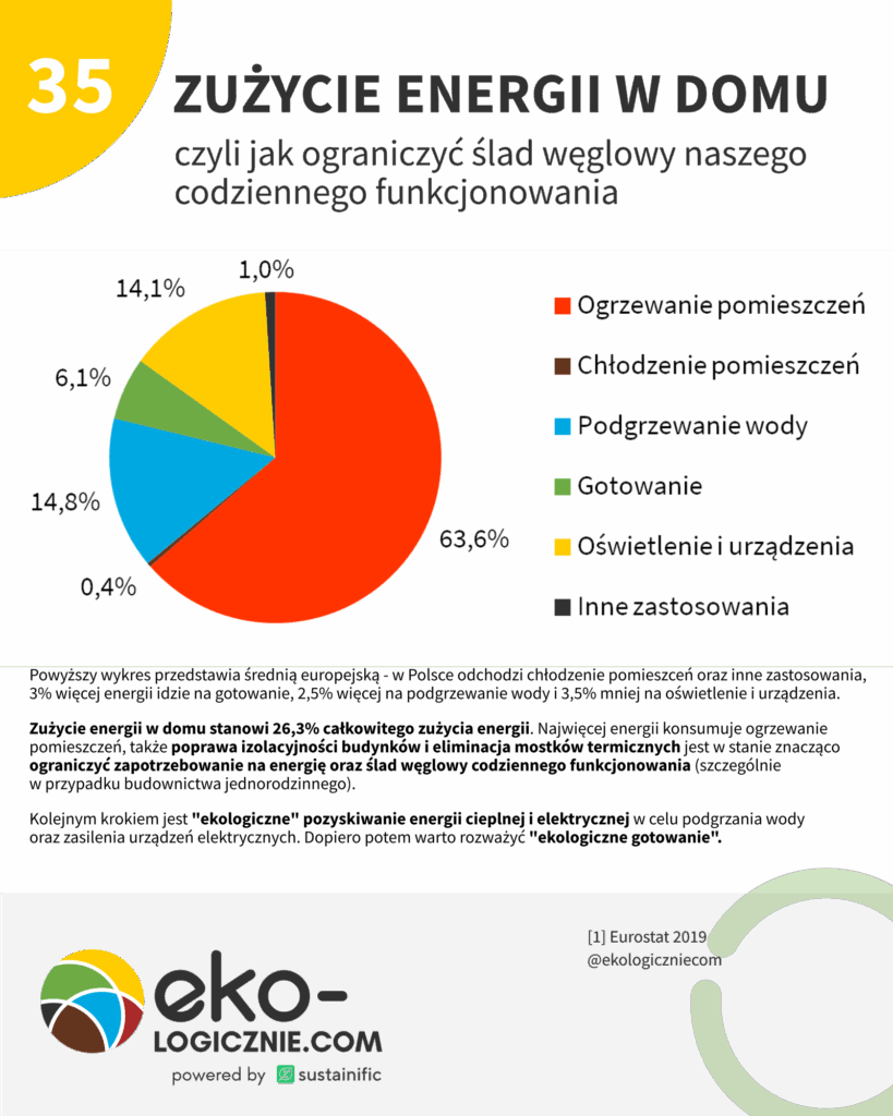 Aktualnie trwa COP26 podczas którego kilkadziesiąt tys. delegatów „walczy” o to, żeby ogranizcyć emisje CO2 (ale jak to Węglowy Szowinista pokazał, na razie za bardzo im to nie wychodzi[1]). Tymczasem jeżeli chcemy wziąć sprawy we własne ręce, to zapotrzebowanie na energię zwiazane z naszym domem stanowi 26,3% całkowitego zużycia energii (wg Eurostatu). Jak się przyjrzymy, do czego potrzebujemy energię, to zobaczymy, że najwięcej jej schodzi na ogrzewanie.